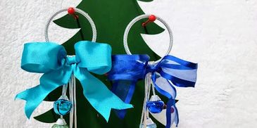Colorful, glittery wood ornaments, can be used as ornaments or package toppers.